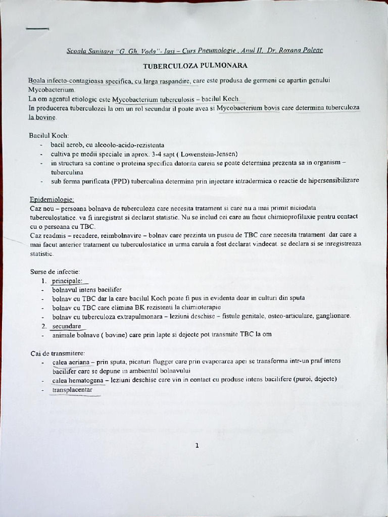 [Link] focar extrapulmonar, poate fi localizata numai la plamani sau la intreg organismul, se caracterizeaza