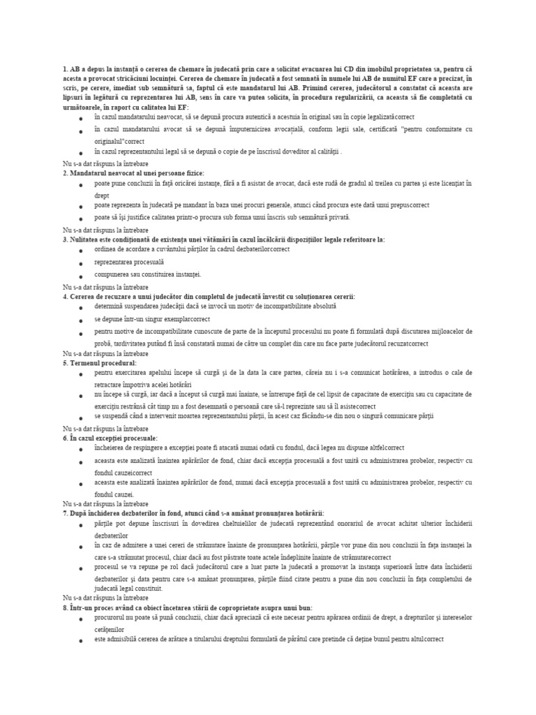 acesta a provocat stricăciuni locuinţei. Cererea de chemare în judecată a fost semnată în numele lui AB de numitul EF care a precizat, în