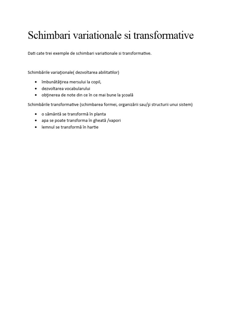 Dati cate trei exemple de schimbari variationale si transformative.