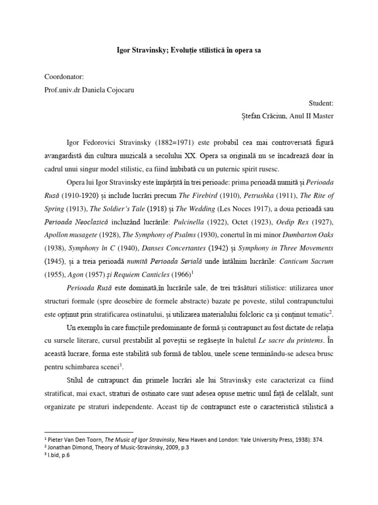 perioada neoclasică de compoziție cunoscută ca ”sforzando in piano”7. Stravinsky a fost și