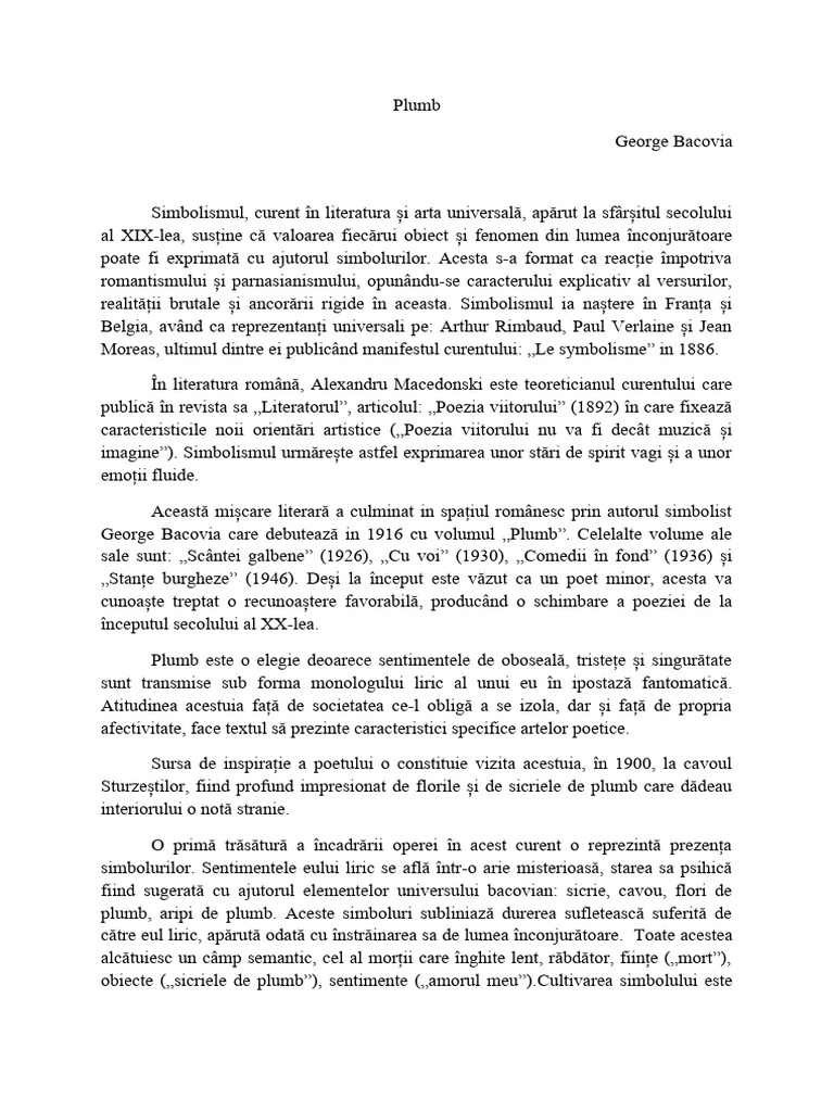 Poemul „Plumb” este o capodoperă a liricii bacoviene și a poeziei simboliste,