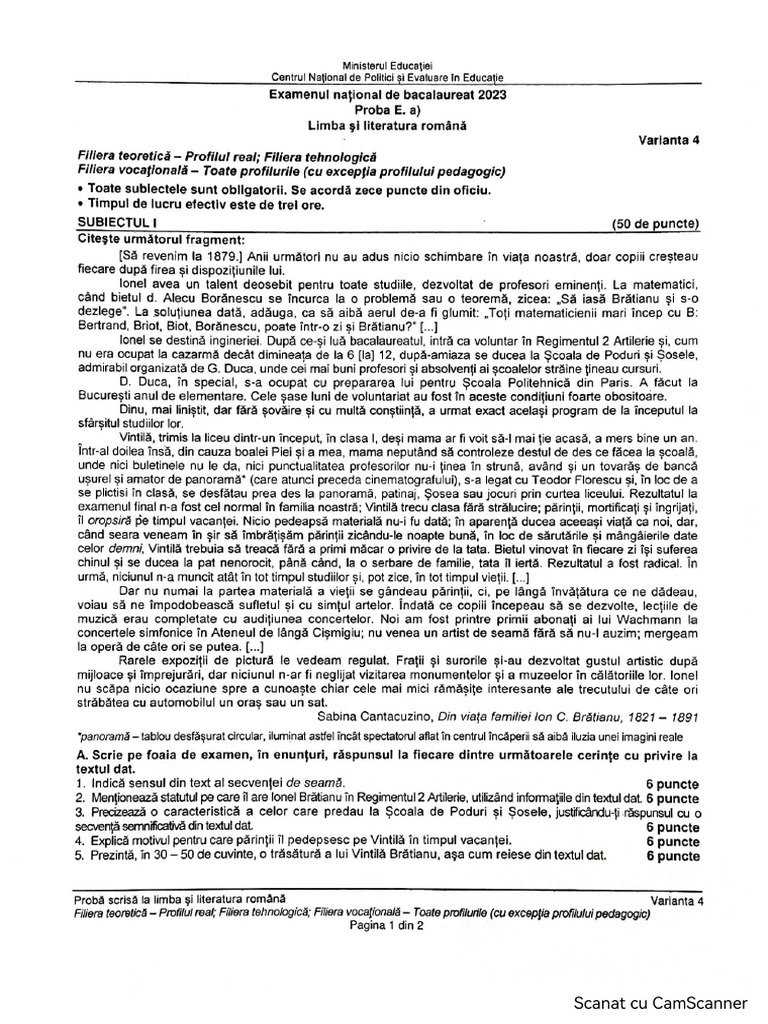 {mn vederea acordéril punctajului pentru redactare, réspunsul trebuie s& aib minimum 50 de cuvinte si