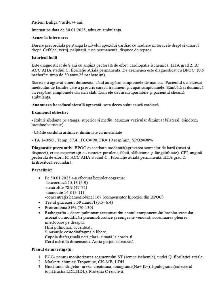 Pacient Buliga Vasile,74 ani.
