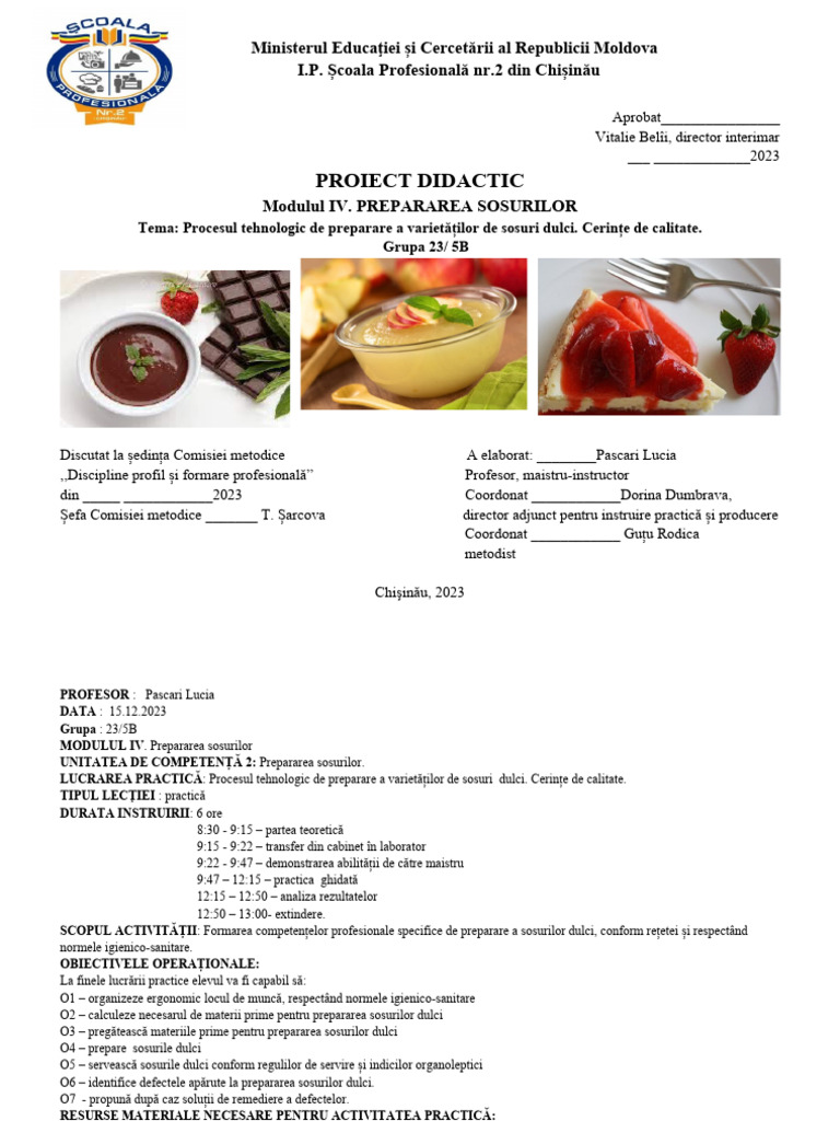 Șefa Comisiei metodice _______ T. Șarcova director adjunct pentru instruire practică și producere