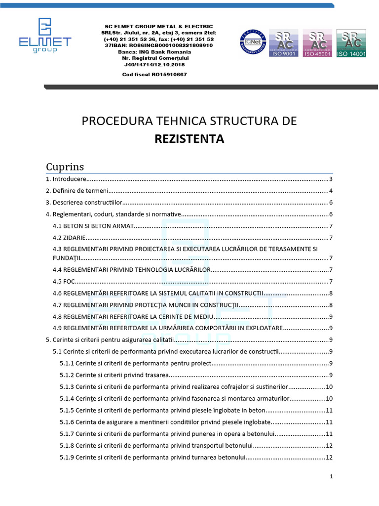 structurii de rezistenta a cladirilor ce constituie investitia precum si tehnologia de punere in opera cu