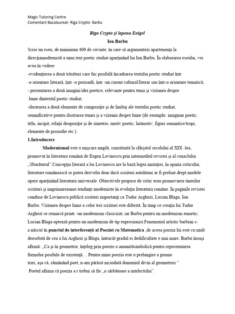 Comentarii Bacalaureat- Riga Crypto- Barbu