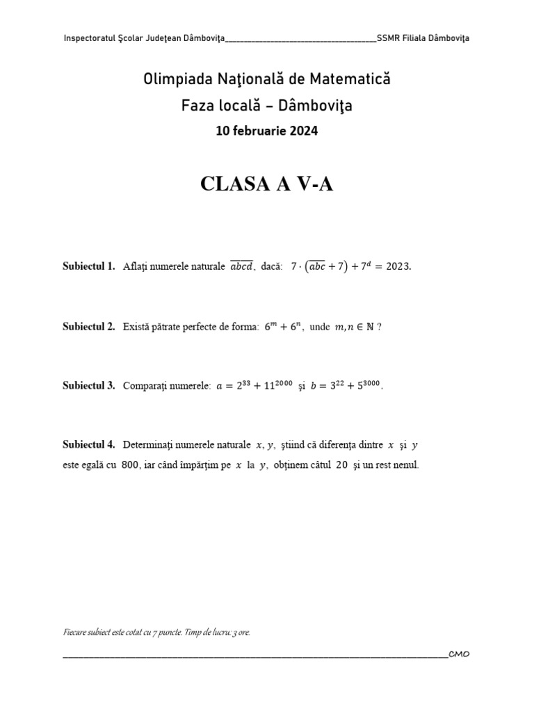 Subiectul 4. Determinaţi numerele naturale 𝑥, 𝑦, ştiind că diferenţa dintre 𝑥 şi 𝑦