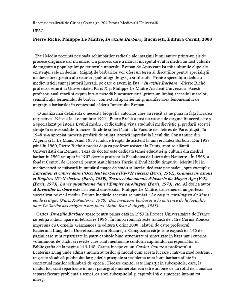 În concluzie pot afirma că cartea Invaziile Barbare a lui Pierre Riche și Philippe le Maitre