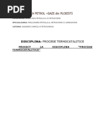 controlat de bucla de reglare FRC - 239) pentru situaiile de pornire - oprire. O alt parte din benzina nestabilizat iese din vasul 09-FV - 9 pe conductele PB-09F-108150-RUR3, PB-09F-108A-150-RUR3 i PB-09F-108B-150-RUR3 i intr n aspiraia pompelor 09-FP-7A,B (una antrenat cu motor electric, cealalt cu turbin). De aici benzina este mpins pe conductele PB-09F-109-100-RUR3, PB-09F-109A-100-RUR3 i PB-09F-109B-100-RUR3 ca reflux de vrf, pe talerul nr. 1 al coloanei 09-FV - 8, cu un debit reglat funcie de temperatura de la vrful coloanei de bucla de reglare TRC - 177. Apa de proces (apa uzat) ce conine dizolvat H2S, NH3 , CN- se separ la partea inferioar a domei vasului 09-FV - 9 i intr pe conductele AI-09F-110-100-RUR3, AI-09F-110A-100RUR3 i AI-09F-110B-100-RUR3 n aspiraia pompelor 09-FP - 10 A / B. De aici, pe conducta AI-09F-111-100-RUR3, AI-09F-111A-100-RUR3 i AI-09F-111B-100-RUR3 apa uzat este trimis n vasul acumulator 09-YV -1 cu un debit reglat funcie de nivelul de interfa hidrocarburi - ap din doma vasului 09-FV - 9 de bucla de reglare LRC - 231. S-a realizat legtura din linia de benzin debutanizat din linia de refulare a pompelor 09GP8 A, B n linia de reflux de la vrful coloanei de fracionare 09-FV8, pentru micorarea 3.2.2. [Link]. sarcinii de vapori de la vrful coloanei 09-FV8. Descrierea procesului tehnologic - secia de fracionare Generaliti Efluentul de la reactorul de CRACARE CATALITIC trebuie s fie separat n coloana de fracionare n produse i fluxuri de reciclu : -reziduu (slurry); -motorin grea (HCO); -motorin uoar (LCO); -benzin grea; -benzin nestabilizat; -gaze bogate. Coloana de fracionare a instalaiei de CRACARE CATALITIC este foarte asemntoare cu coloana de distilaie atmosferic. n ambele cazuri benzina reprezint produsul de vrf, produsele mai grele fiind obinute ca fracii laterale. FUNCIONAREA LOR DIFER N DOUA PRIVINE: -La coloana de fracionare a instalaiei de CRACARE CATALITIC, produsul de vrf conine pe lnga benzin i o mare cantitate de gaze; -Alimentarea coloanei de fracionare a instalaiei de cracare catalitic este constituit din vapori suprancalzii de hidrocarburi la 5200C i 1,4 barG (efluentul de la reactor). Aceasta [Link]. implic adaptarea unor soluii pentru ndeprtarea excedentului de cldur. Descrierea procesului Prezentarea fluxului tehnologic al instalaiei de fracionare este n conformitate cu schema