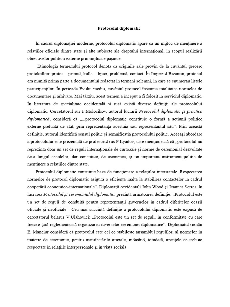 diplomatic. Cercetătorul rus [Link], autorul lucrării Protocolul diplomatic şi practica