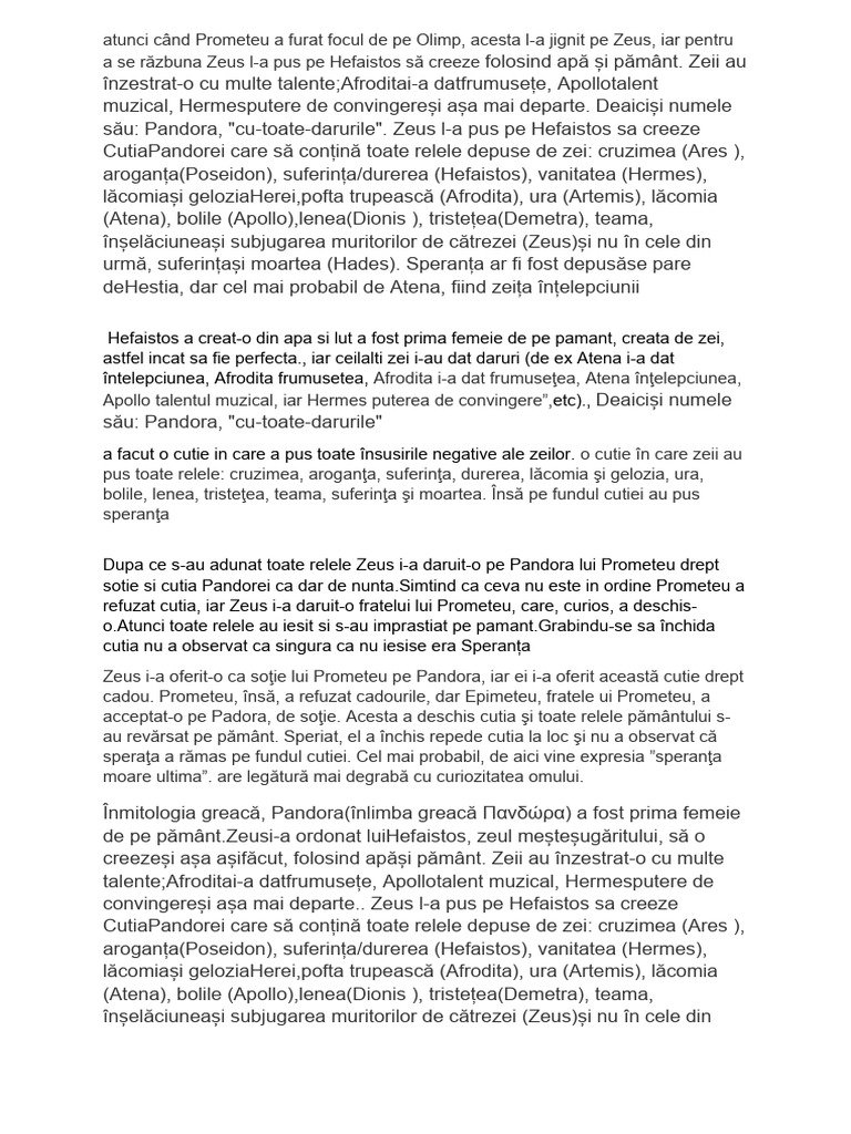 sotie si cutia Pandorei ca dar de [Link] ca ceva nu este in ordine Prometeu a