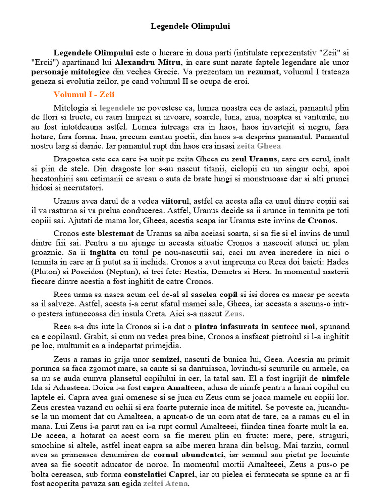personaje mitologice din vechea Grecie. Va prezentam un rezumat, volumul I trateaza
