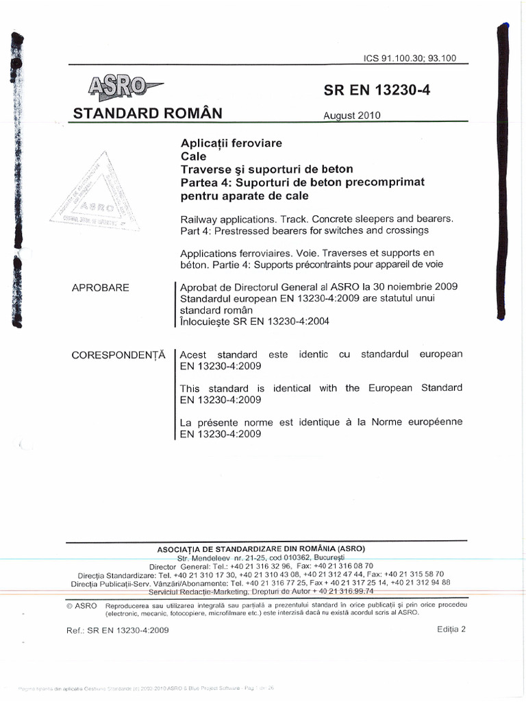 Aprobat de Directorul General al ASRO la 30 noiembrie 2009