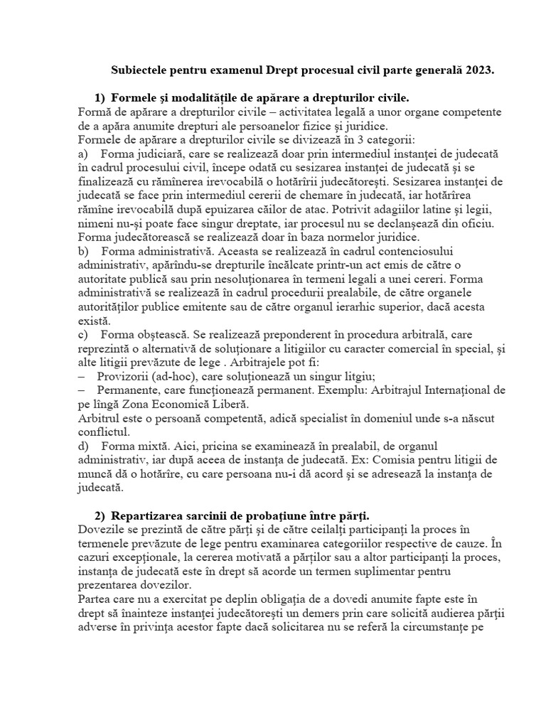 Subiectele pentru examenul Drept procesual civil parte generală 2023.