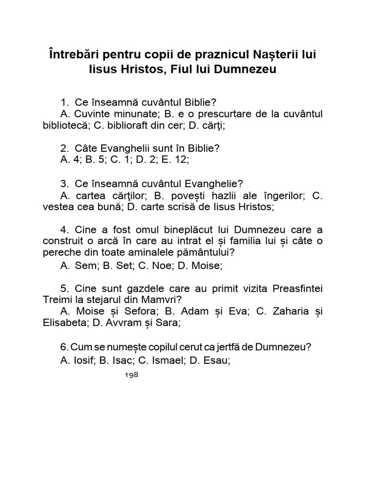 Crăciun și bunătatea cu care împarte el cadouri la toţi copii; D. Că Dumnezeu s-a