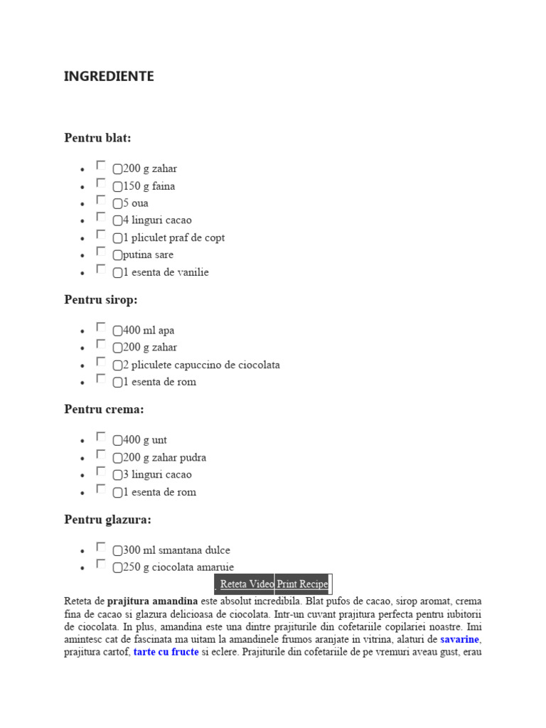Reteta de prajitura amandina este absolut incredibila. Blat pufos de cacao, sirop aromat, crema