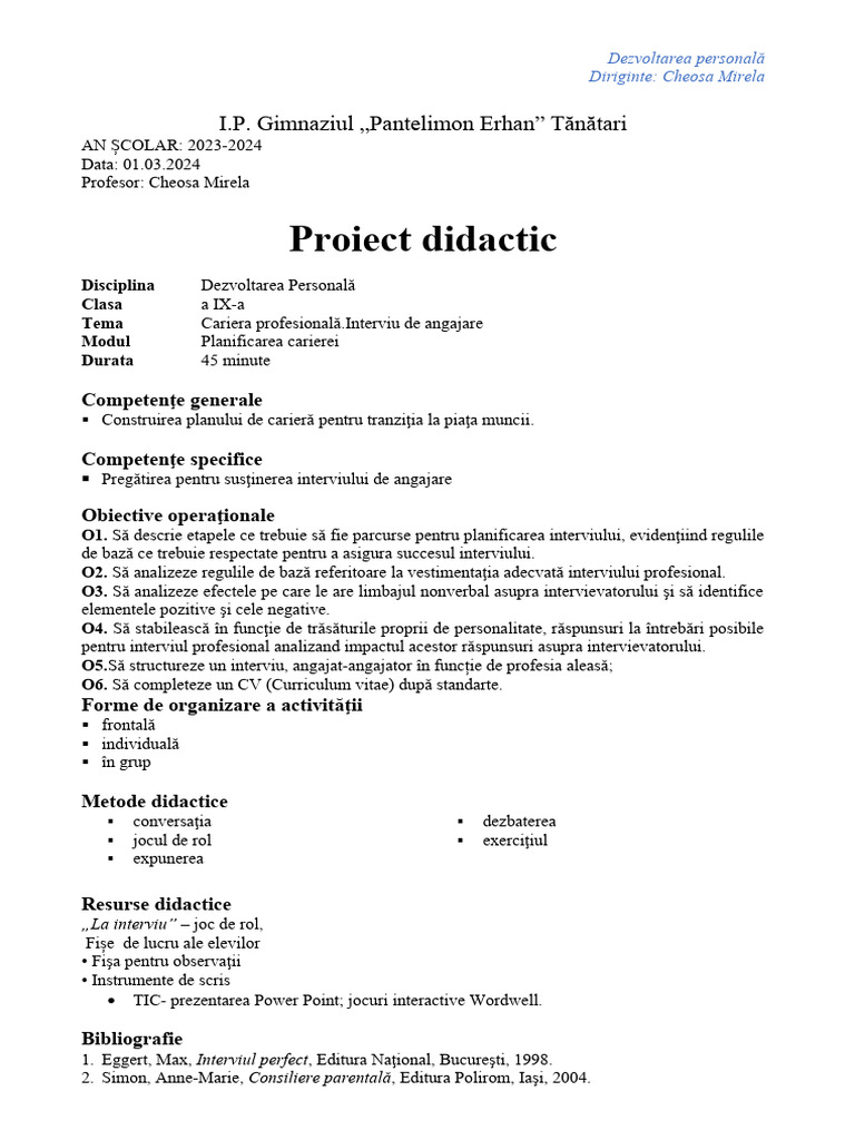 O5.Să structureze un interviu, angajat-angajator în funcție de profesia aleasă;