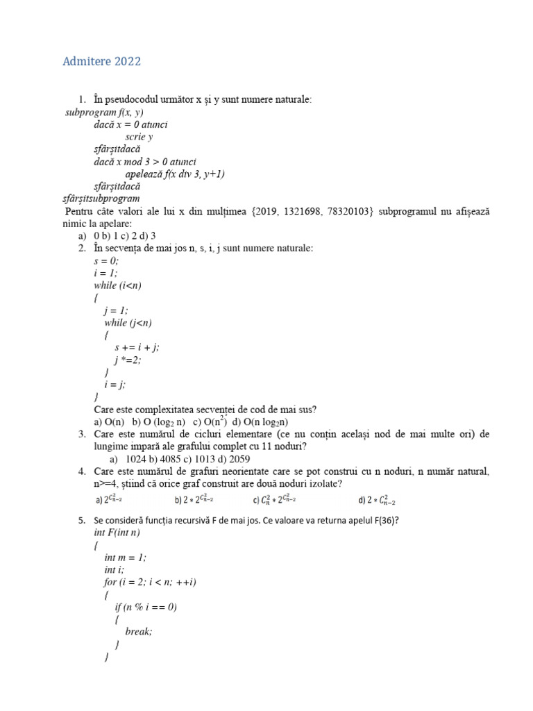 2. În secvența de mai jos n, s, i, j sunt numere naturale: