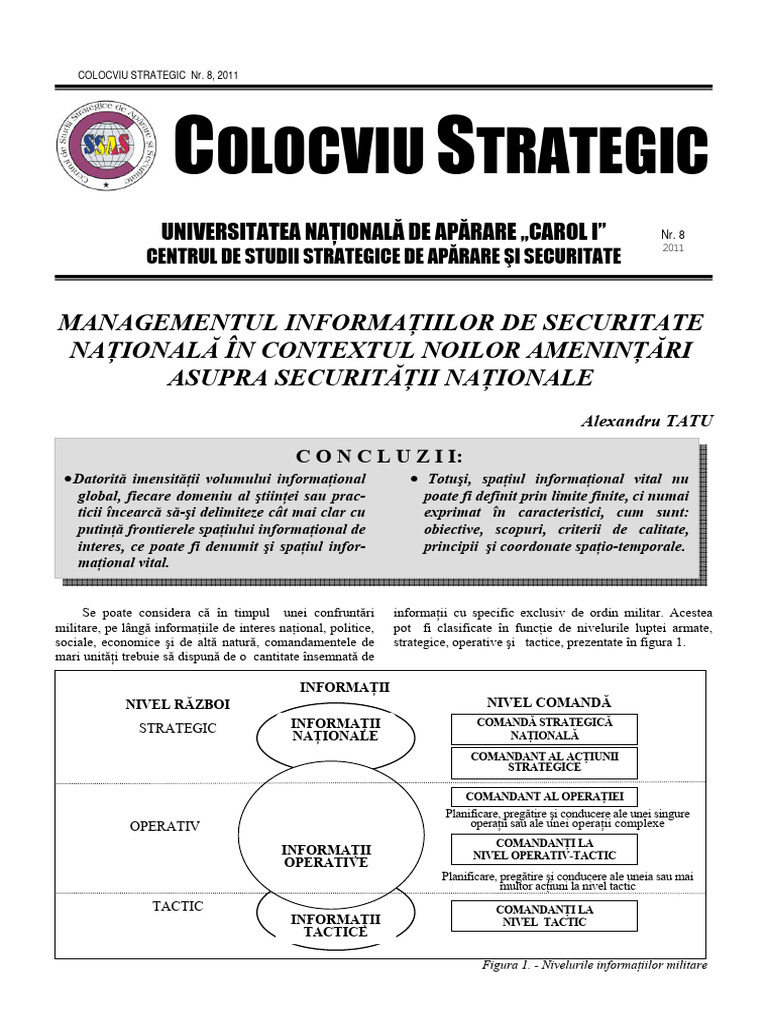 COLOCVIU STRATEGIC este o publicaţie a Centrului de Studii Strategice de Apărare şi Securitate ce include