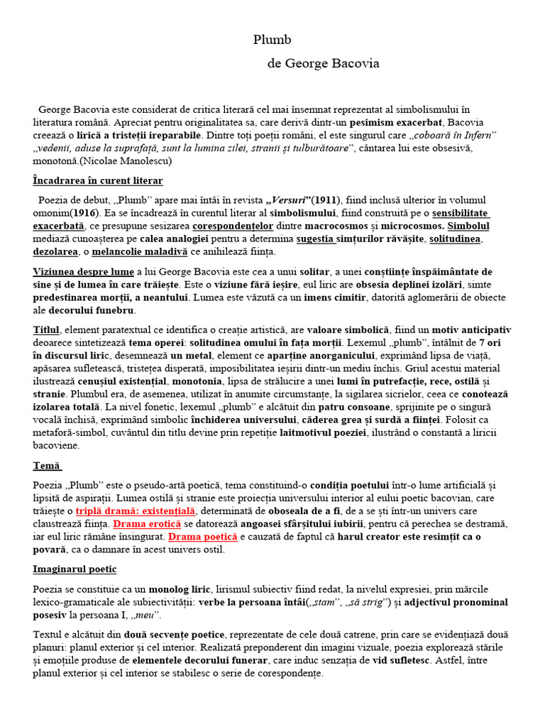 În concluzie, poezia „Plumb” de G. Bacovia se încadrează în estetica simbolistă prin folosirea simbolului,