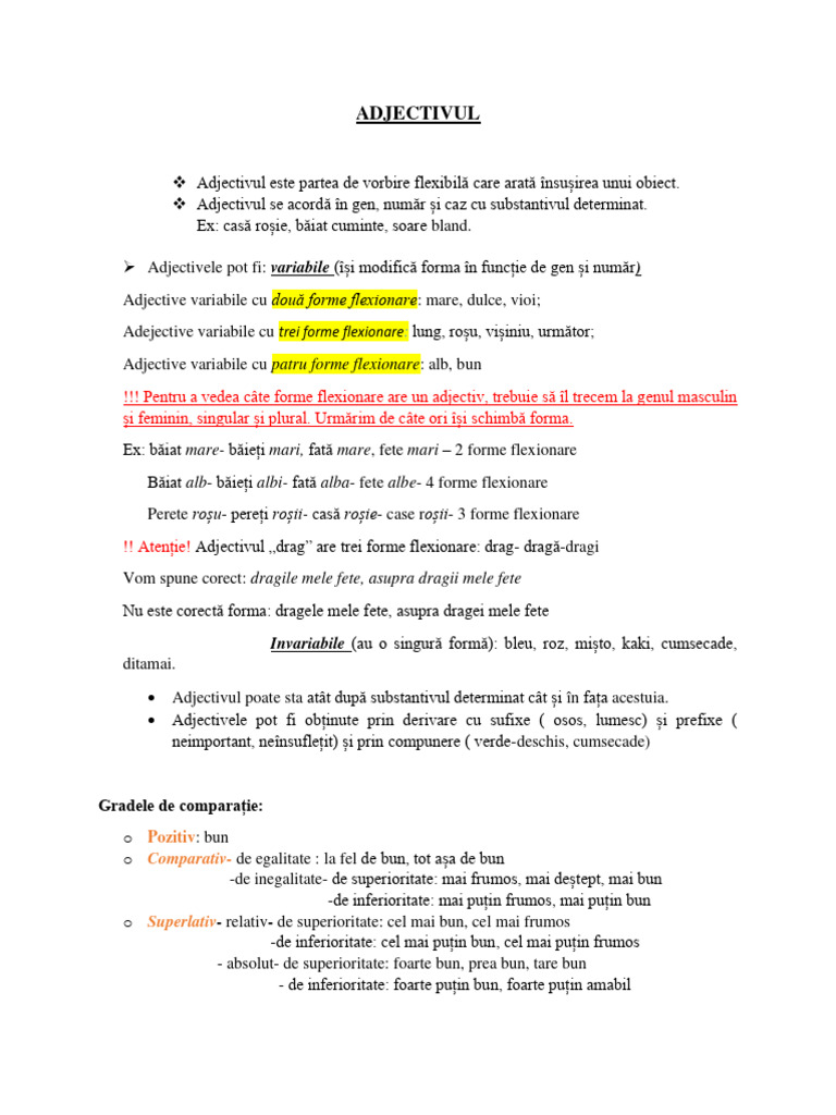 ➢ Adjectivele pot fi: variabile (își modifică forma în funcție de gen și număr)