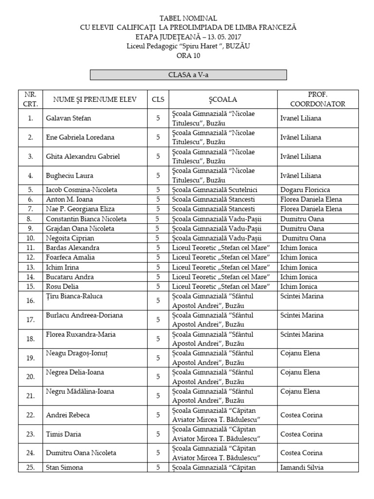 ETAPA JUDEŢEANĂ – 13. 05. 2017