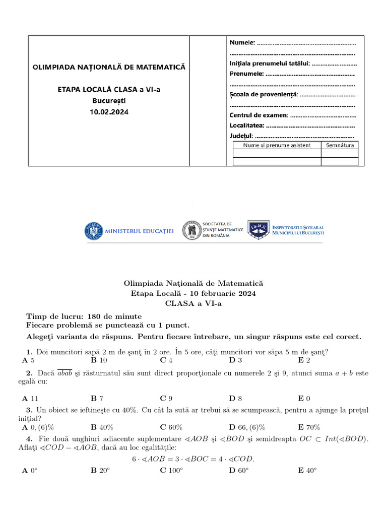 Alegeţi varianta de răspuns. Pentru fiecare ı̂ntrebare, un singur răspuns este cel corect.