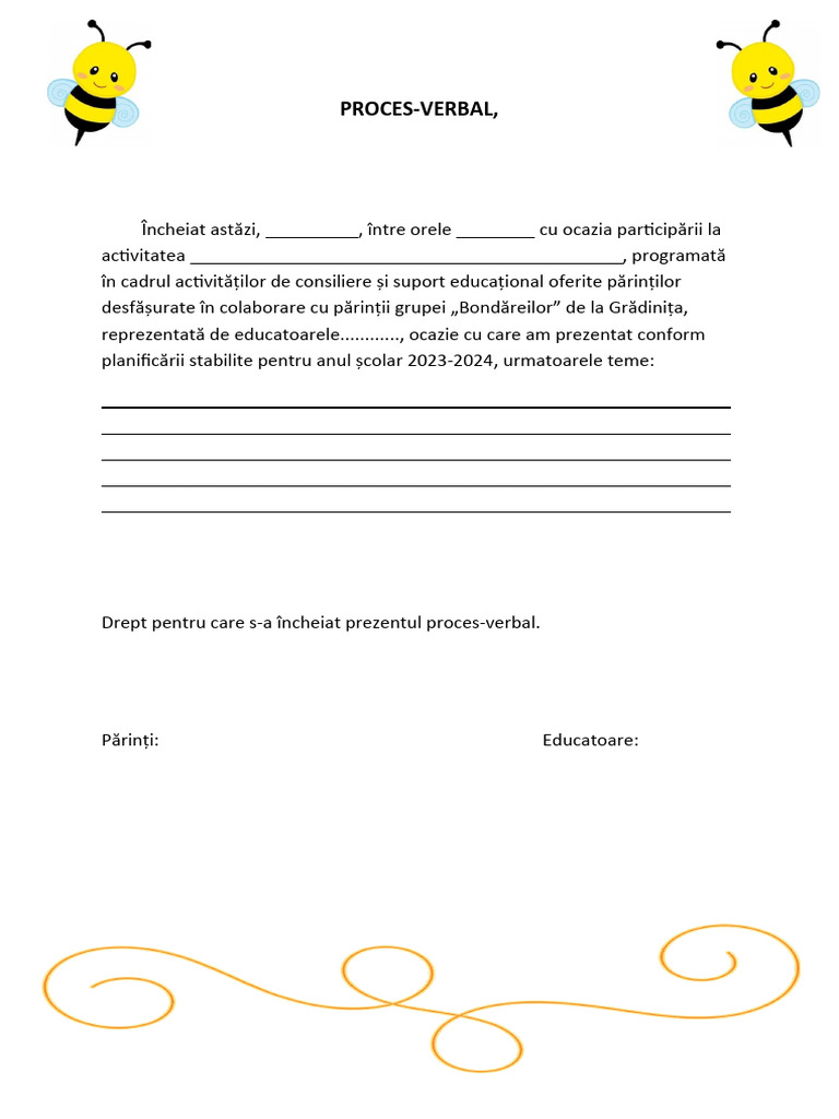 Încheiat astăzi, _________, între orele ________ cu ocazia participării la