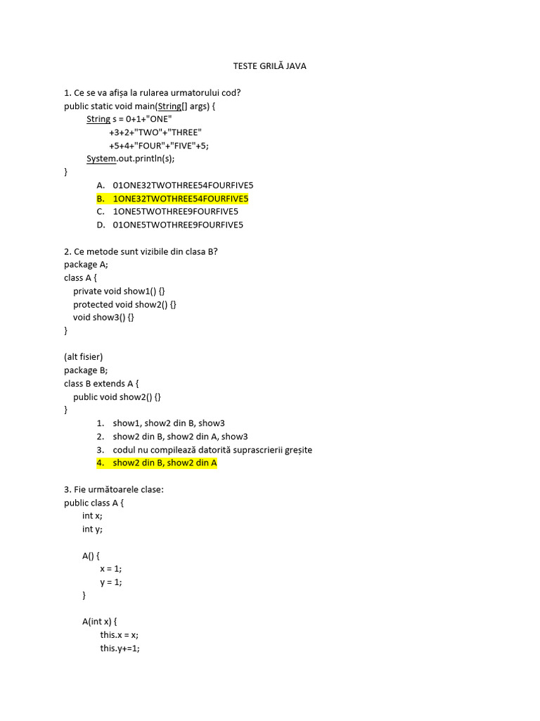TESTE GRILĂ JAVA