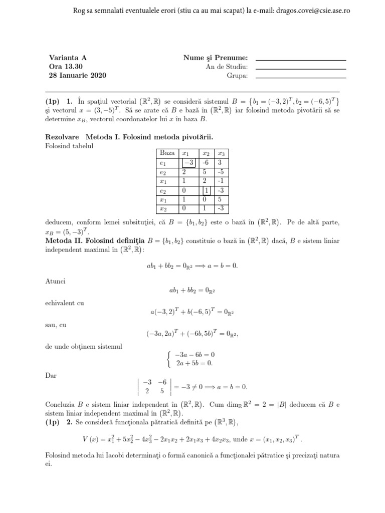 lui Iacobi determinaţi o formă canonică a funcţionalei pătratice şi precizaţi natura funcţionalei pătratice.