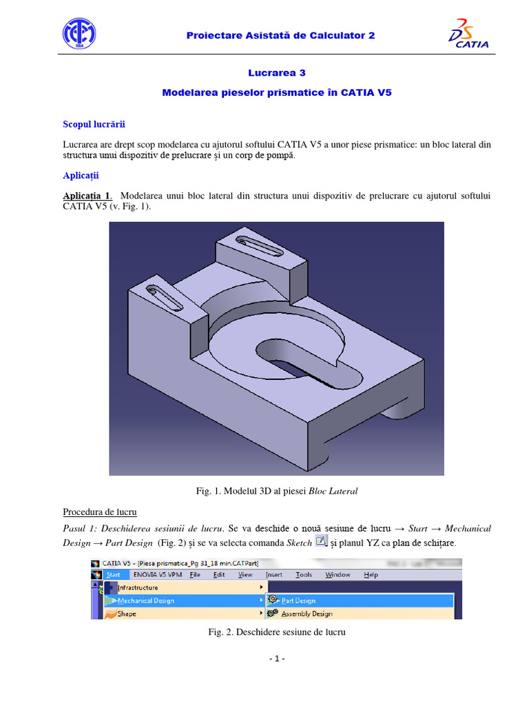 Lucrarea are drept scop modelarea cu ajutorul softului CATIA V5 a unor piese prismatice: un bloc lateral din