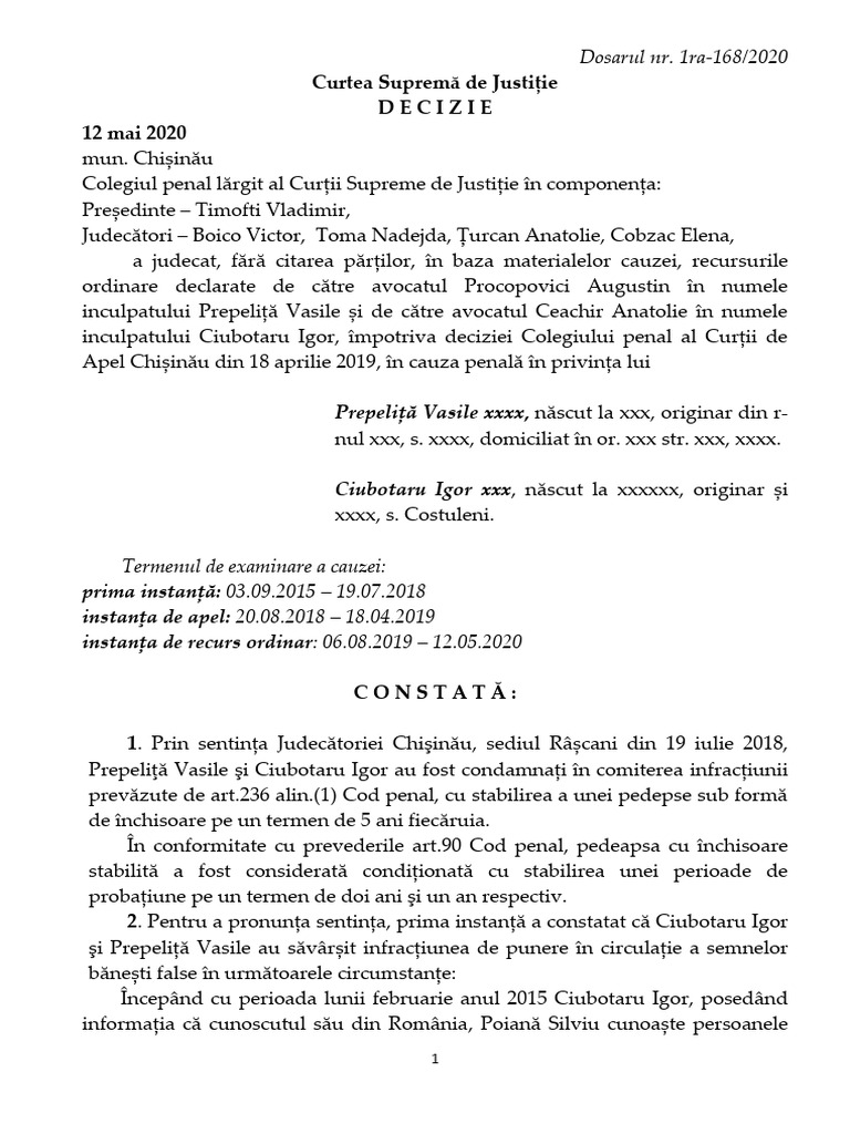 Astfel, cu toate că inculpații Ciubotaru Igor şi Prepeliţă Vasile şi-au
