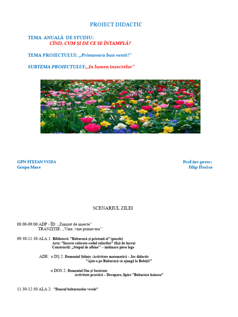 TEMA SĂPTĂMÂNALĂ: ,,In gradina cu flori”