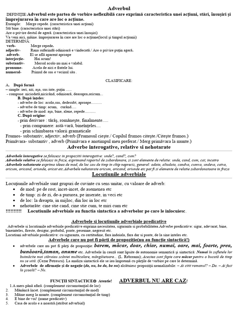 !!!!!!!!!! Locutiunile adverbiale au functia sintactica a adverbelor pe care le inlocuiesc.