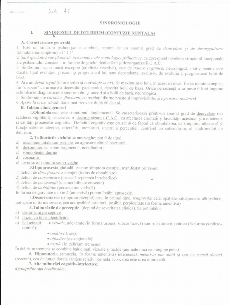 1. Este un sindrom psihoorganic cerebral, centrat de un anumit grad de denivelare si de dezorganizare