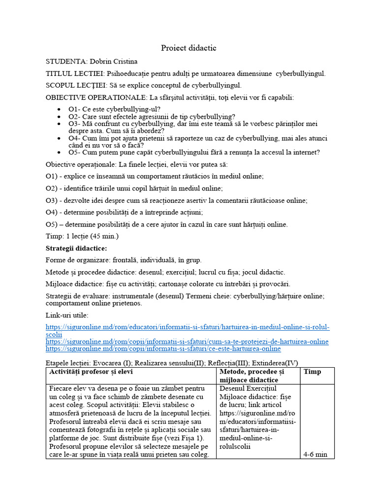 TITLUL LECTIEI: Psihoeducație pentru adulți pe urmatoarea dimensiune cyberbullyingul.