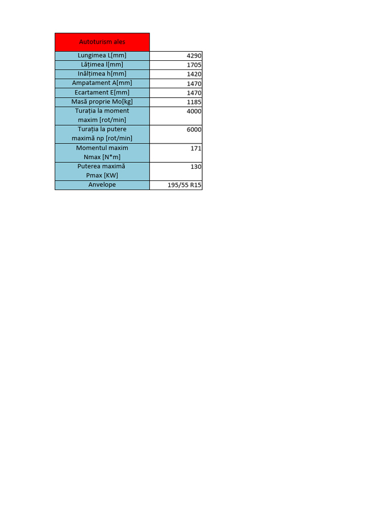 Masă proprie Mo[kg] 1185