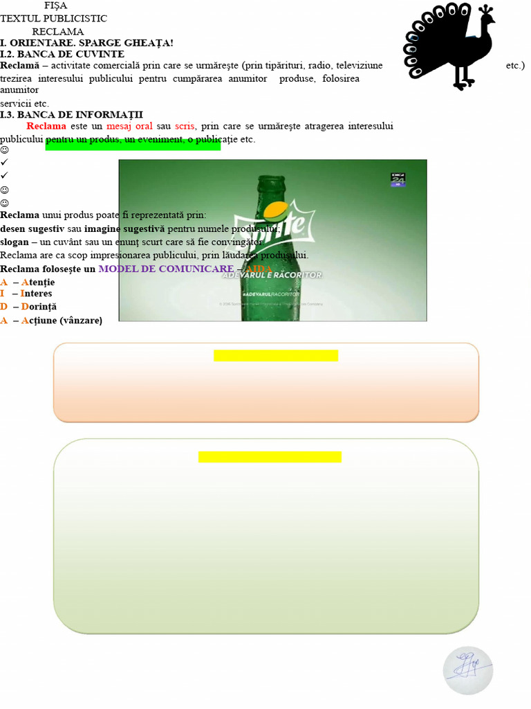 . Precizează în casete: produsul căruia i se face reclamă, sloganul şi imaginea.