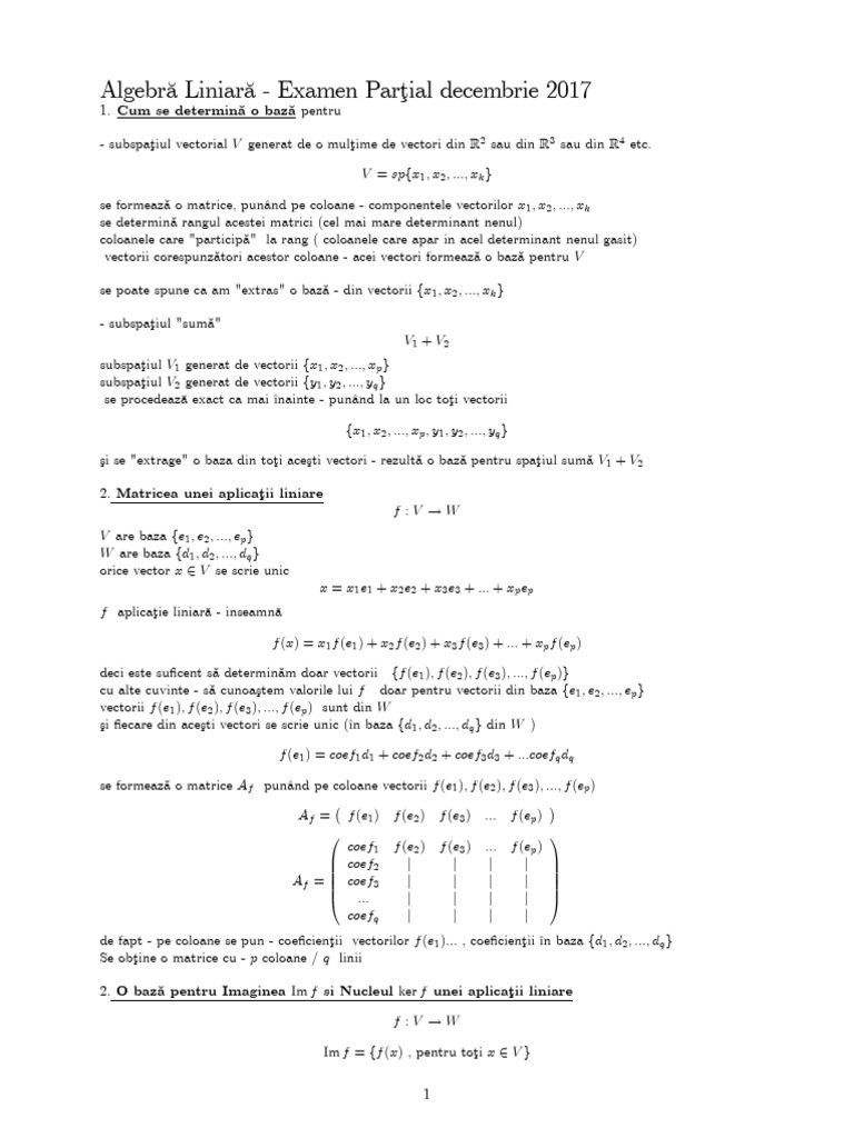 a pentru Imaginea Im f si Nucleul ker f unei aplicaţii liniare
