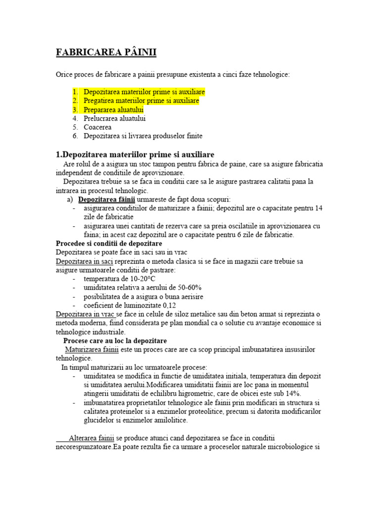 Orice proces de fabricare a painii presupune existenta a cinci faze tehnologice: