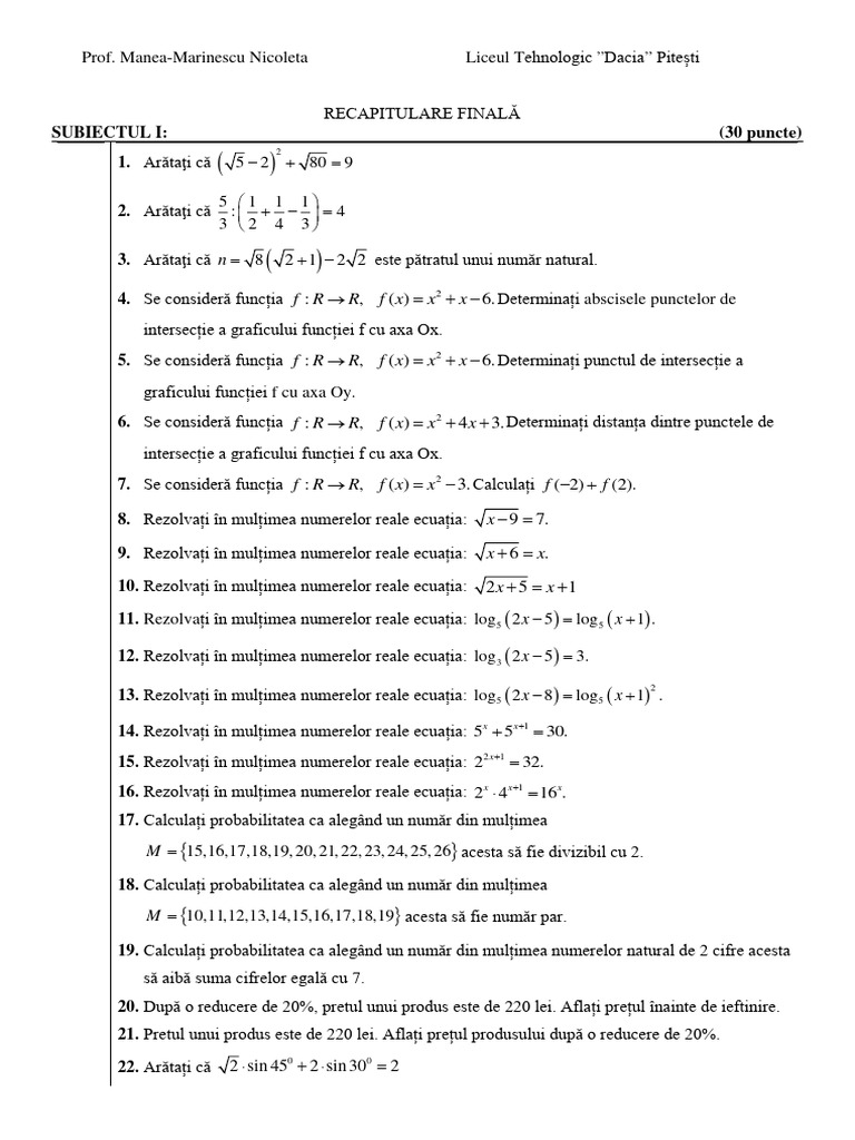 SUBIECTUL I: (30 puncte)