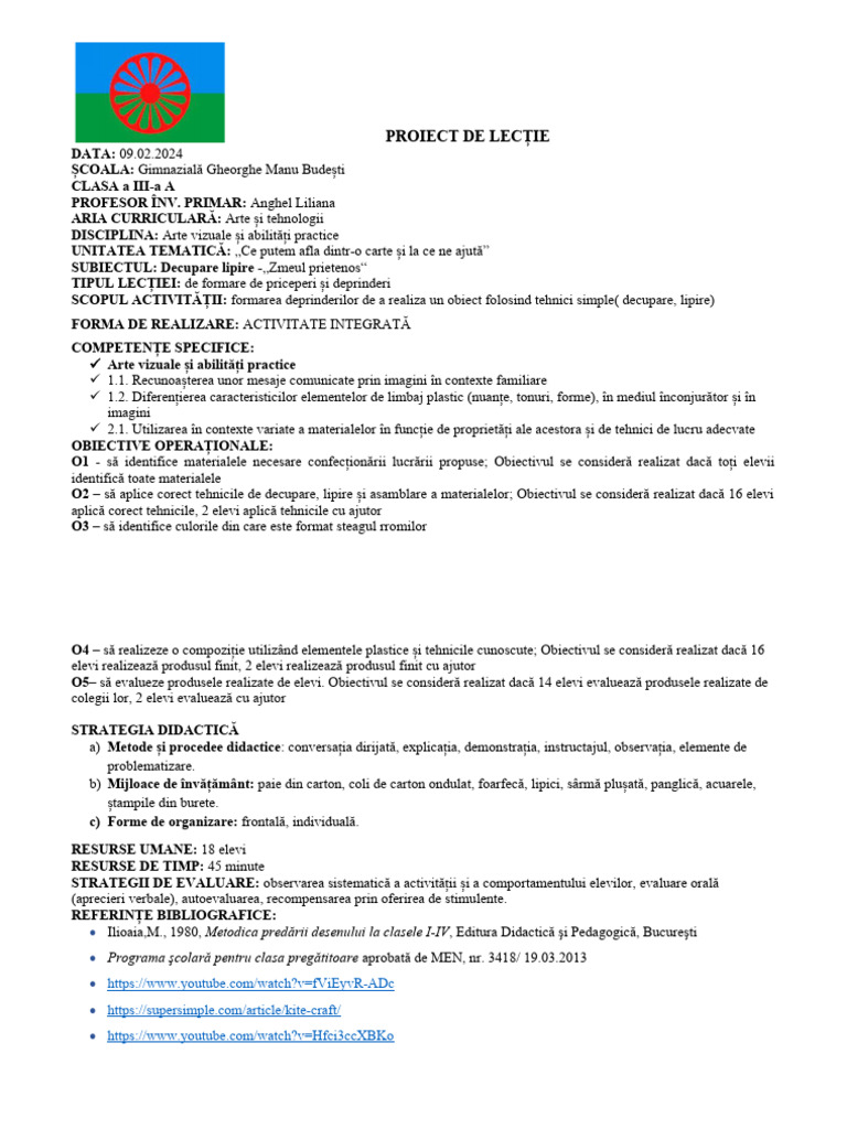 SUBIECTUL: Decupare lipire -„Zmeul prietenos“