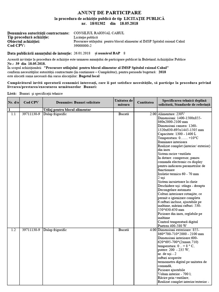 Conținutul prezentei Invitații este identic cu datele procedurii din cadrul Sistemului Informațional Automatizat ''REGISTRUL