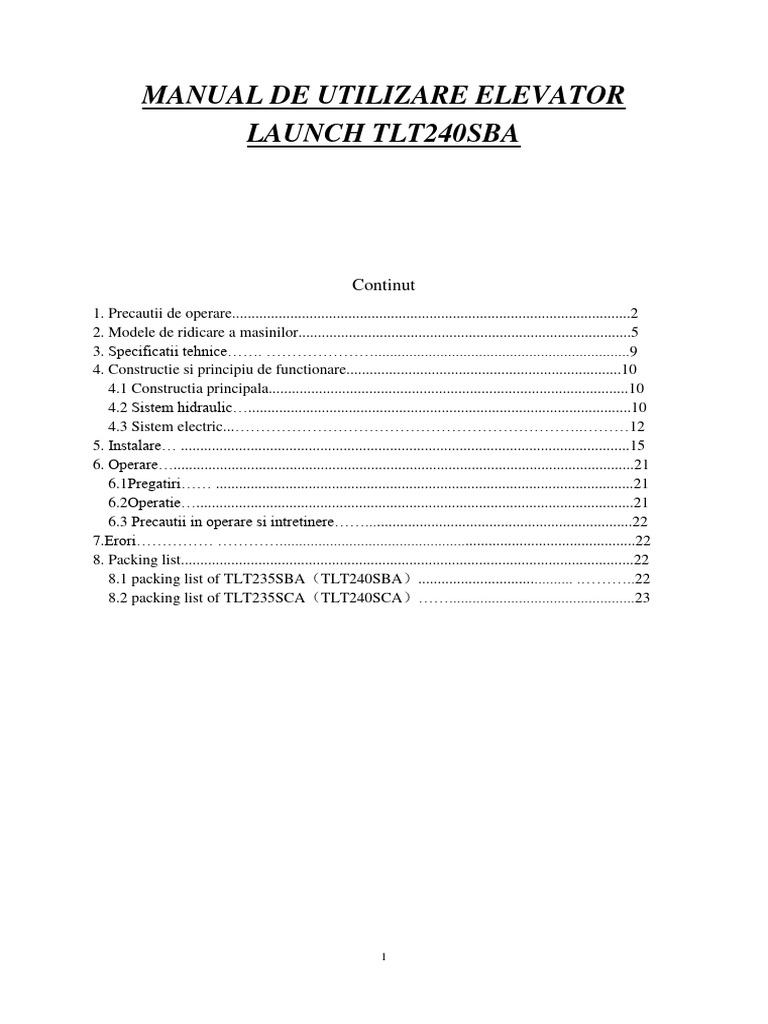 Model Nr. incarcare ridicare ridicare coborare motor elev elev
