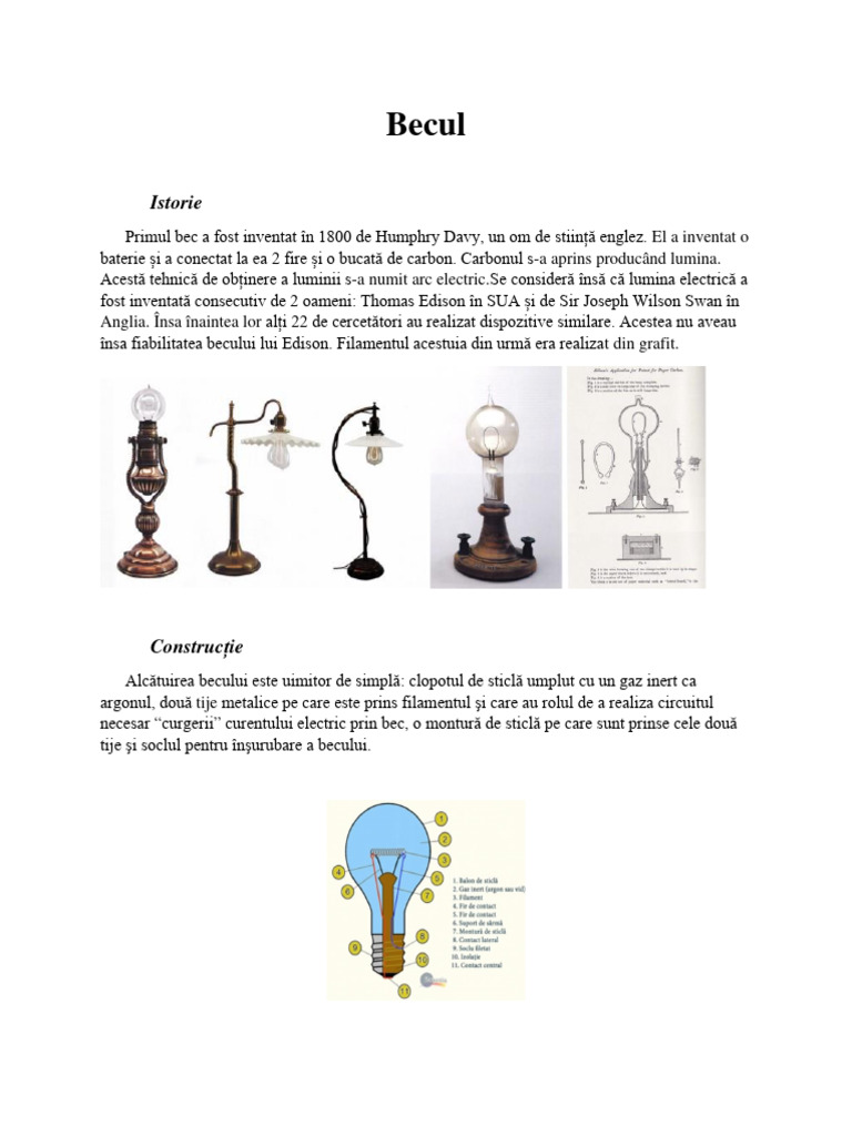 Primul bec a fost inventat în 1800 de Humphry Davy, un om de stiință englez. El a inventat o