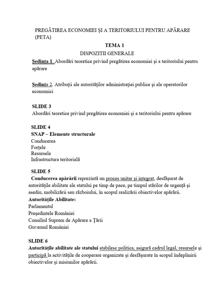 Şedinţa 1. Abordări teoretice privind pregătirea economiei şi a teritoriului pentru
