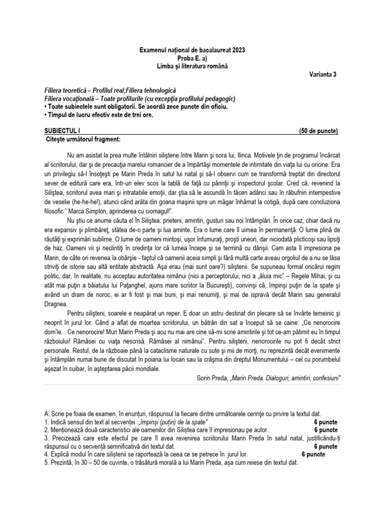 • Toate subiectele sunt obligatorii. Se acordă zece puncte din oficiu.