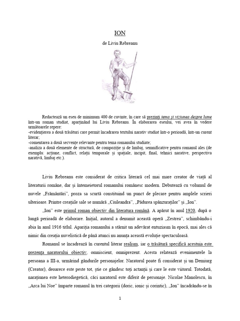 într-un roman studiat, aparținând lui Liviu Rebreanu. În elaborarea eseului, vei avea în vedere