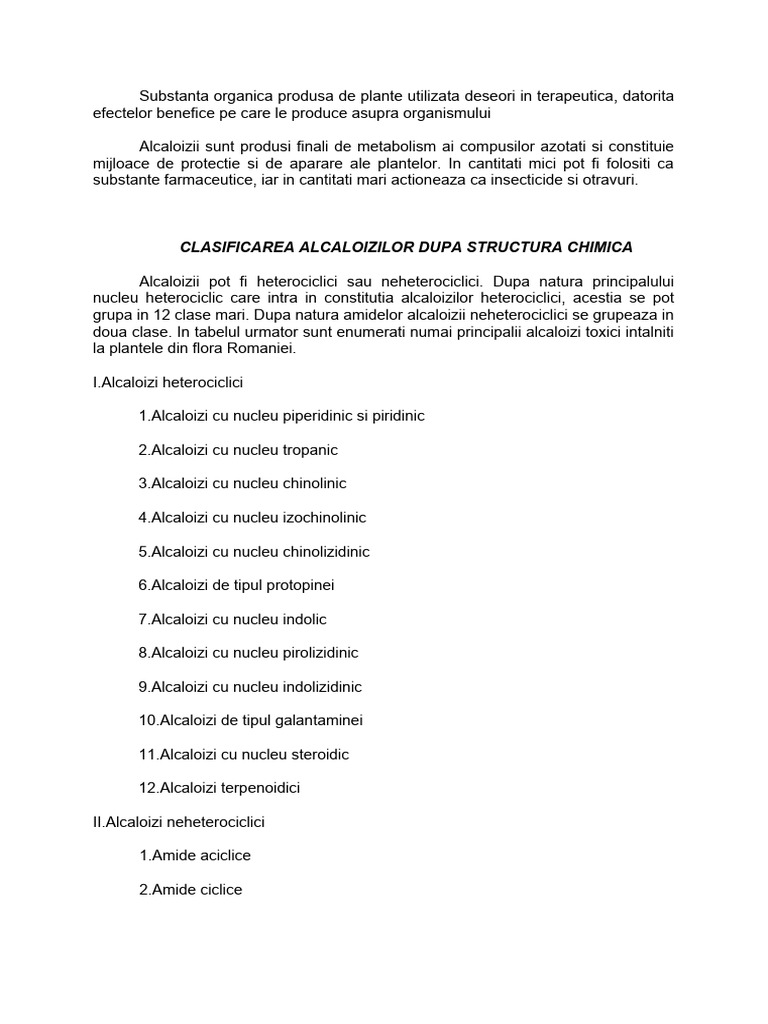 doua clase. In tabelul urmator sunt enumerati numai principalii alcaloizi toxici intalniti