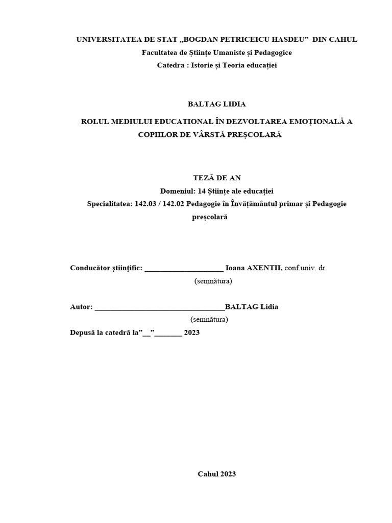 Specialitatea: 142.03 / 142.02 Pedagogie în Învățământul primar și Pedagogie